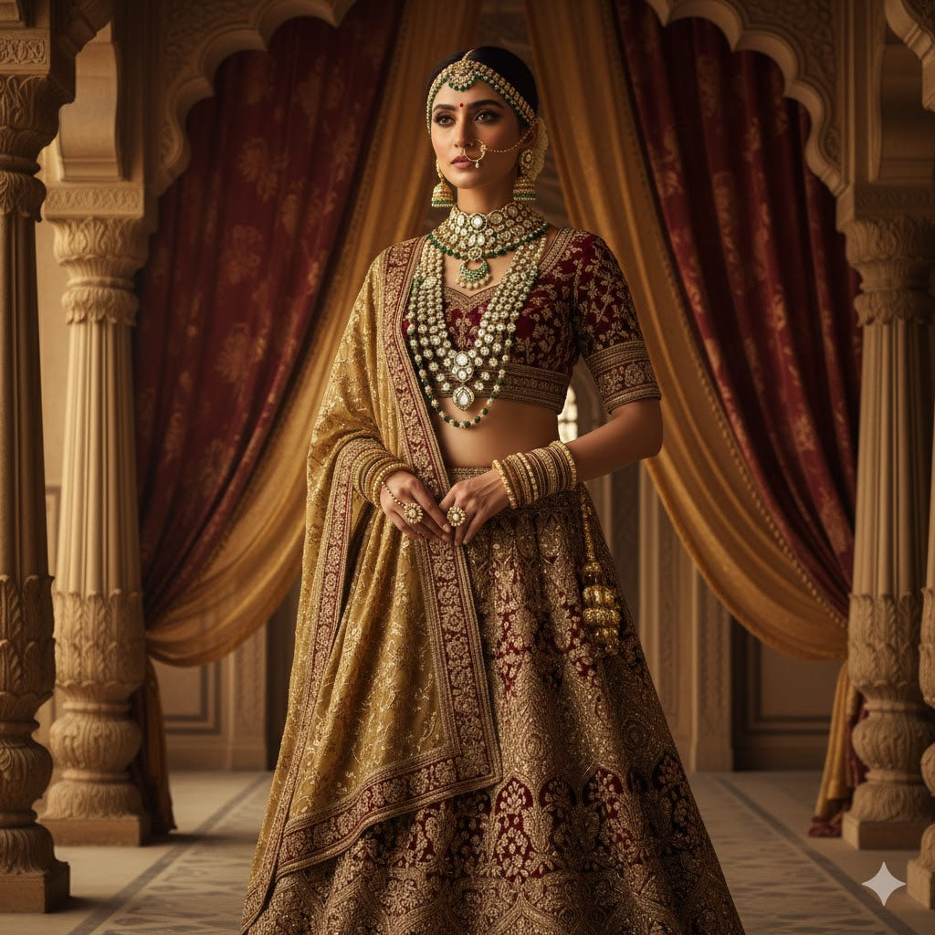 Maroon & Green Color Bridal Heavy Work Ethnic Kundan Necklace Set For Elegant Attire