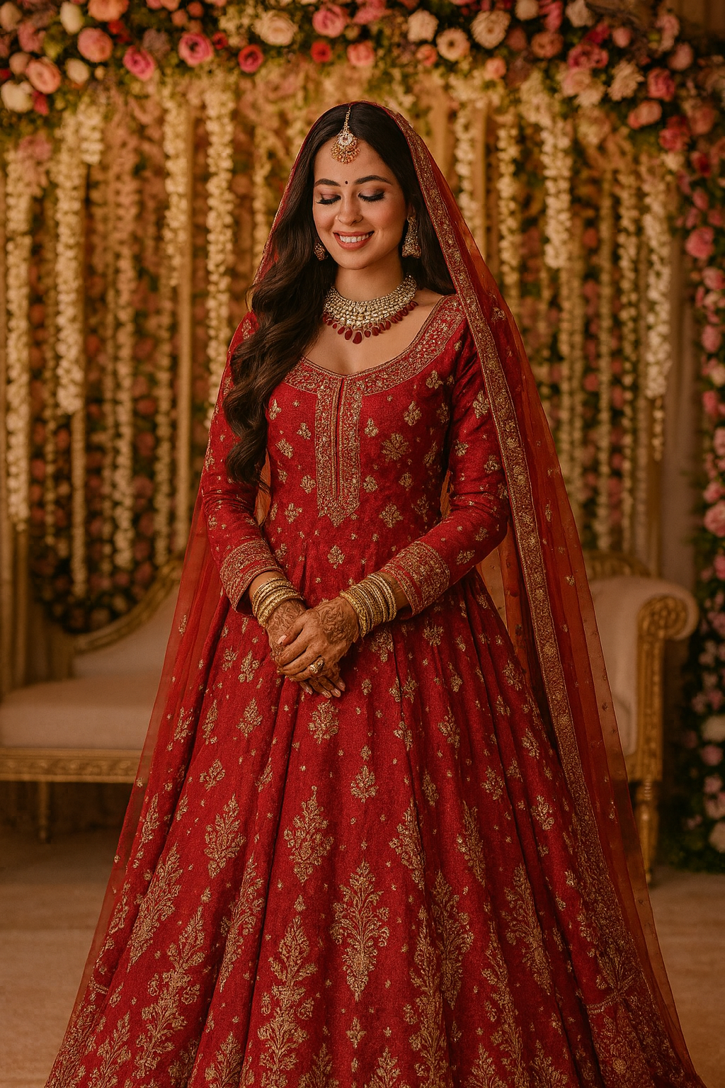 Bridal Maroon & Green Color Kundan Necklace Set For Special Events