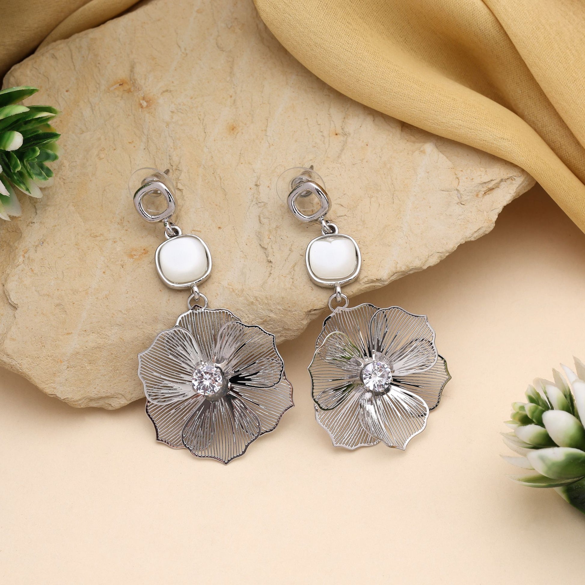 Gorgeous Silver Color Anti Tarnish Earrings With Antique Design For Elegant Occasions
