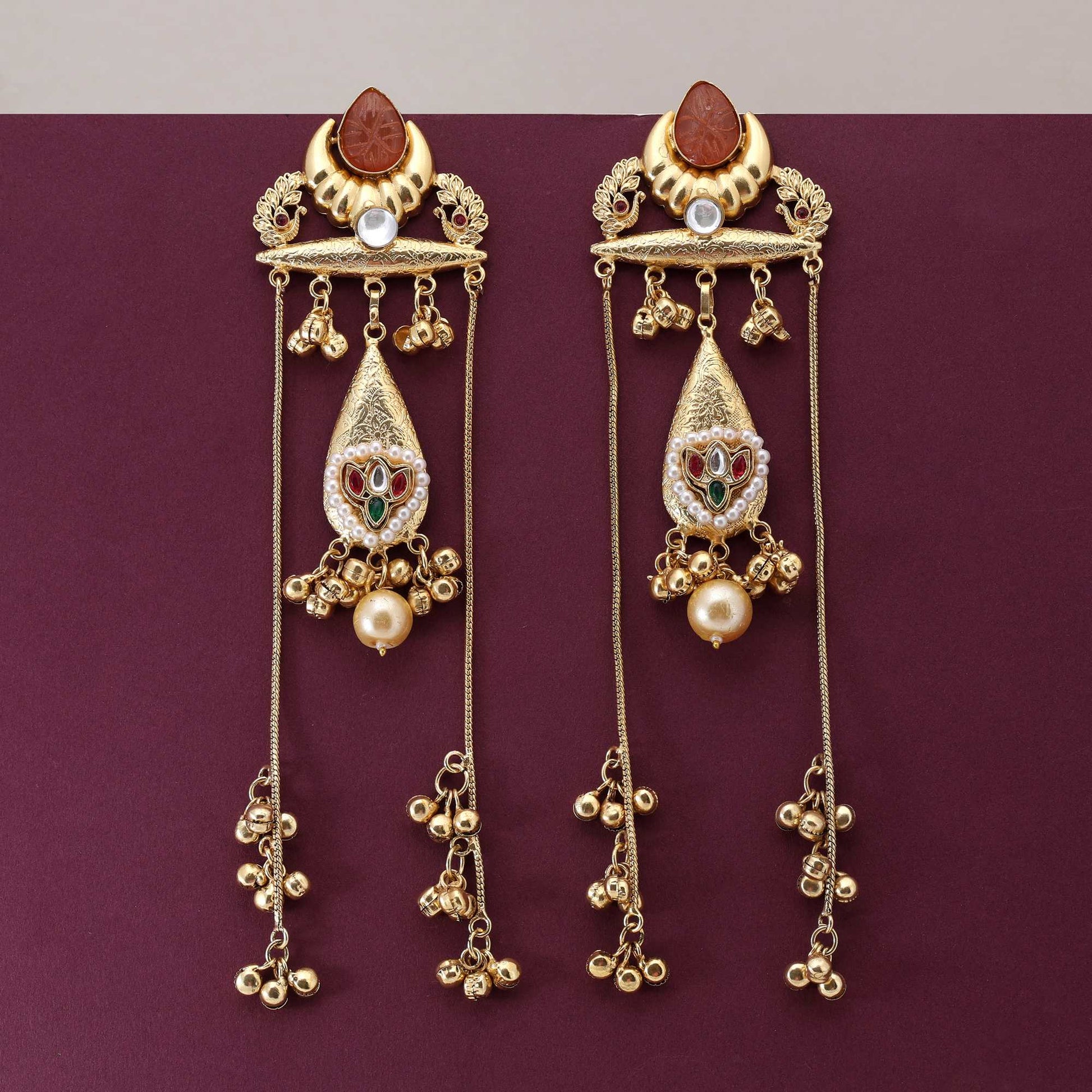 Orange Color Traditional Bridal Look Long Kashmiri Earrings For Festive Celebrations