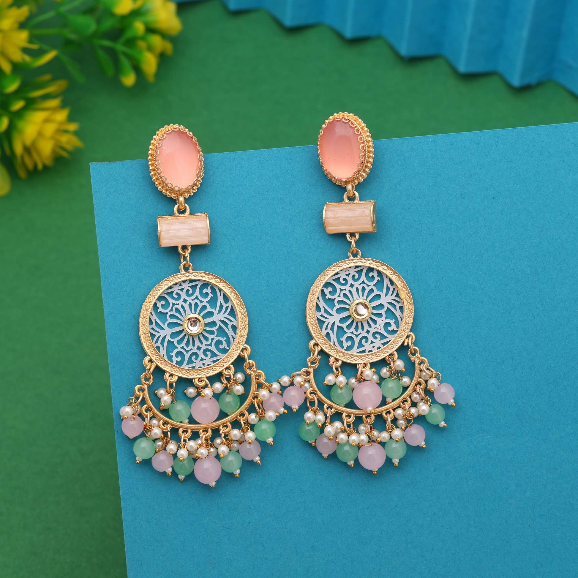 Pink & Pista Green Color Multitone Amrapali Earrings For Elegant Ethnic Outfits