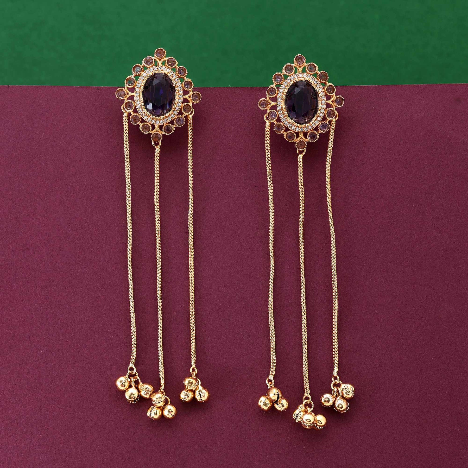 Purple Color Beautifully Crafted Long Kashmiri Earrings For Women’S Ethnic Fashion